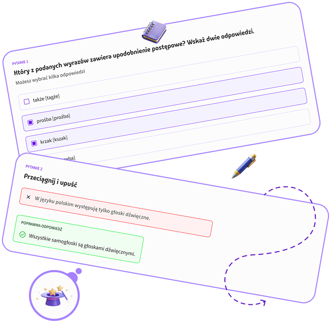 Interaktywne quizy, dzięki którym szybko sprawdzisz stan swojej wiedzy i zobaczysz nad czym jeszcze musisz popracować