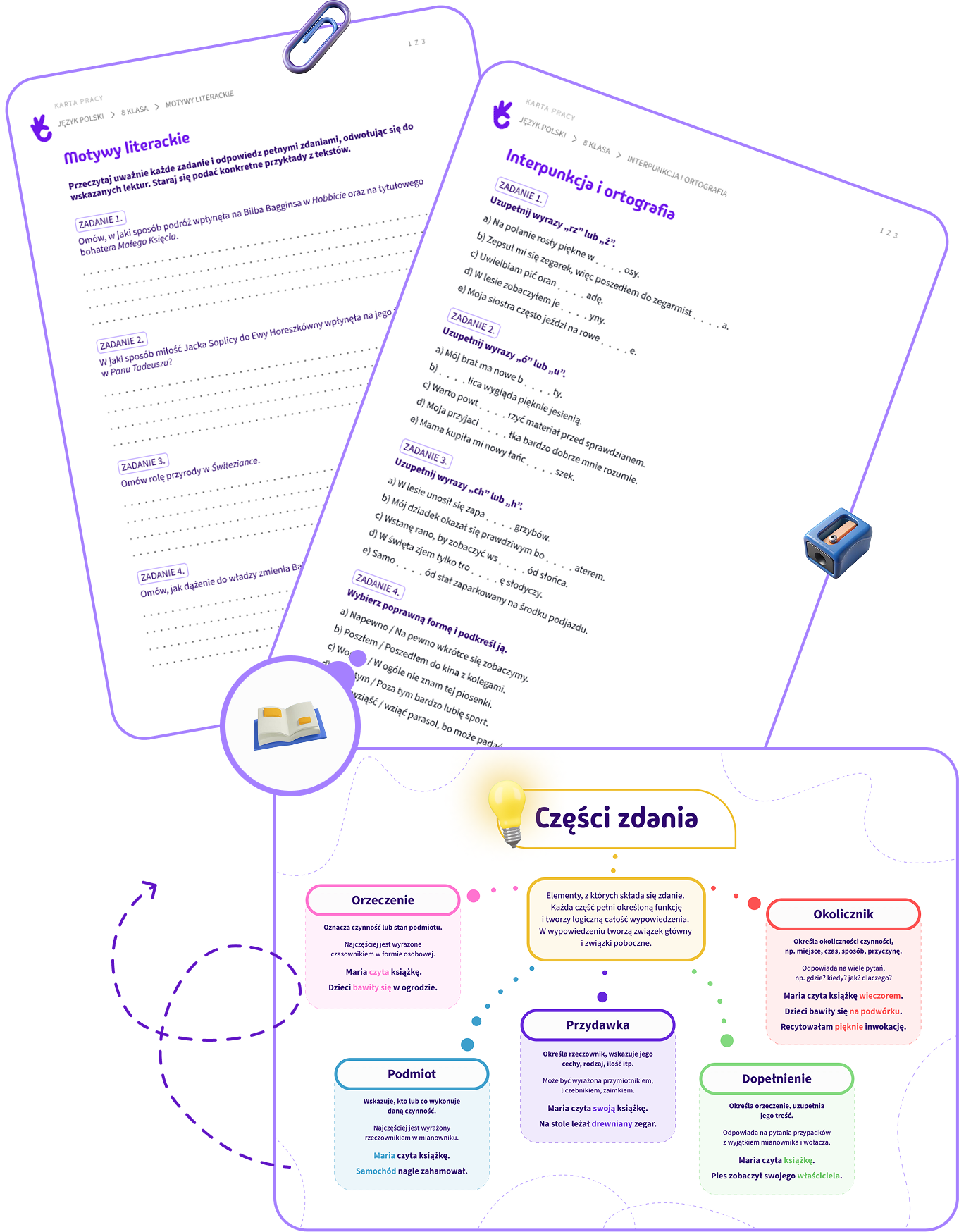 W ramach wybranego przedmiotu otrzymujesz komplet materiałów do nauki i powtórki do egzaminu ósmoklasisty: