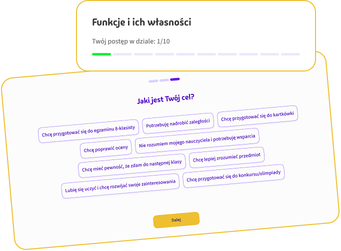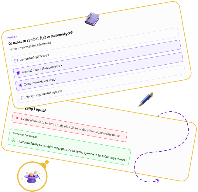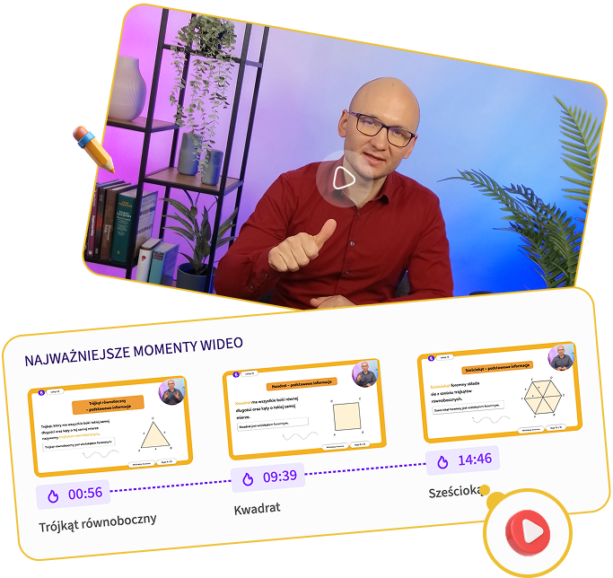 W przygotowaniach do egzaminu ósmoklasisty najważniejsza jest strategia. Nie chodzi o to, abyś zakuwał godzinami. Przyswajaj wiedzę dwa razy szybciej - oglądaj lekcje wideo z powtórkami kluczowych zagadnień i utrwalaj wiedzę dzięki interaktywnym materiałom takim jak fiszki, quizy, mapy myśli, karty pracy.