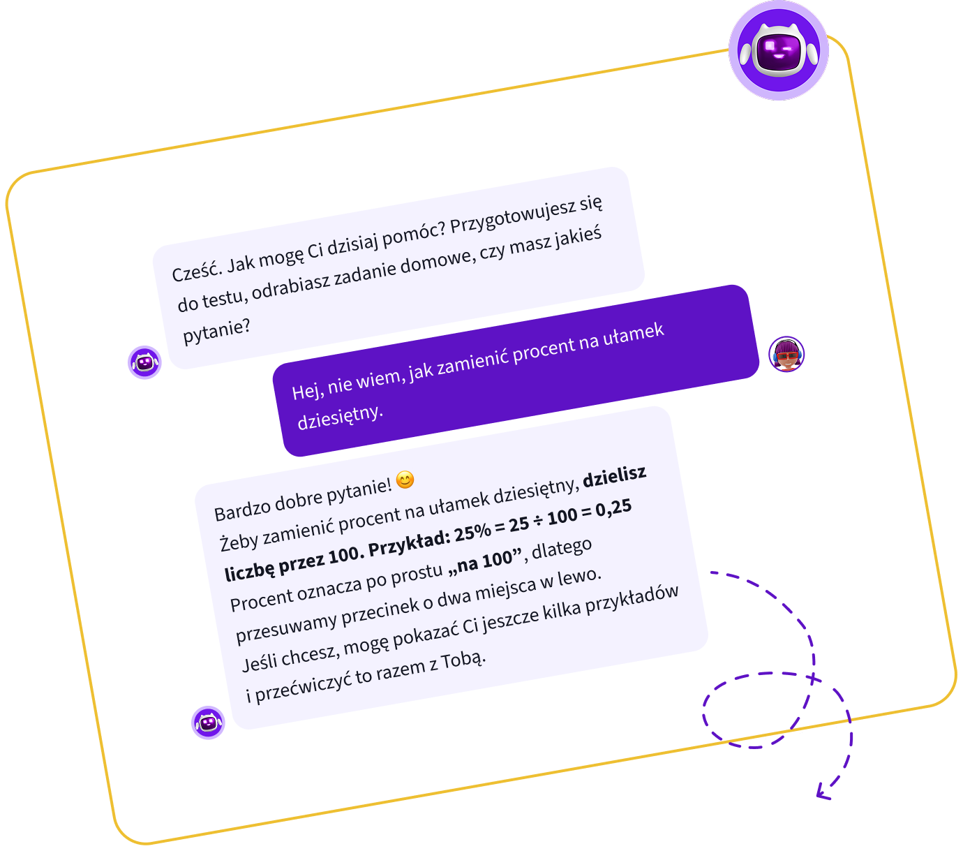Masz jeszcze pytania? Zapytaj Nauczyciela AI – pomaga zrozumieć lekcje w oparciu o materiał dostępny na platformie i chętnie tłumaczy trudne zagadnienia.