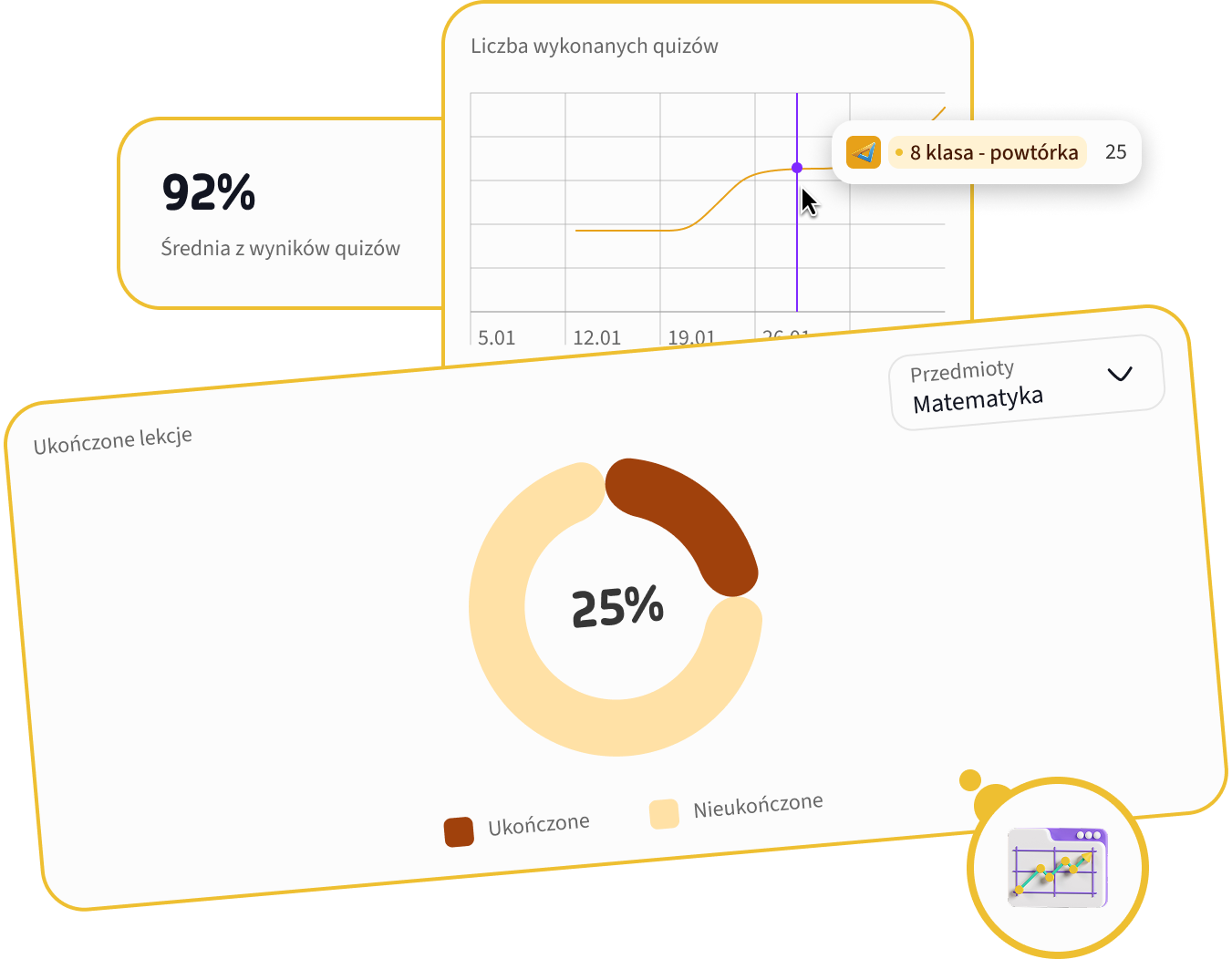 Sprawdzaj swój postęp w nauce, kontroluj przerabiany materiał i efektywnie planuj naukę.